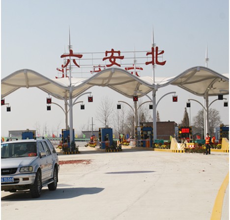 合六葉高速公路六安北收費站改擴建工程建設地點為安徽省六安市。原收費站車道數3進5出,收費天棚寬44.4m,結構為網架球結構形式;改造后收費站車道數6進9出,收費天棚寬88.3m,結構為網架球結構形式。